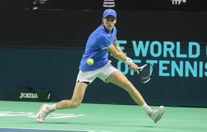 Sinner đánh trái tay ở giải đồng đội Davis Cup tại Malaga,Tây Ban Nha,nơi đội tuyển Italy đăng quang. Ảnh: DC