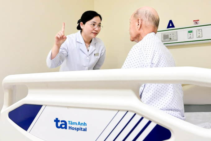 Bác sĩ kiểm tra tình trạng hồi phục của ông Bảy sau một ngày điều trị. Ảnh: Bệnh viện Đa khoa Tâm Anh TP HCM