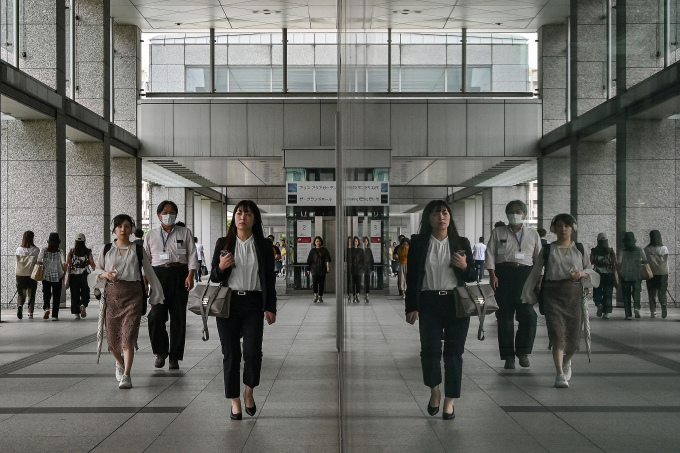 Nhân viên công sở đi bộ trong giờ nghỉ trưa ở ga Shinagawa,Tokyo,tháng 5. Ảnh: AFP