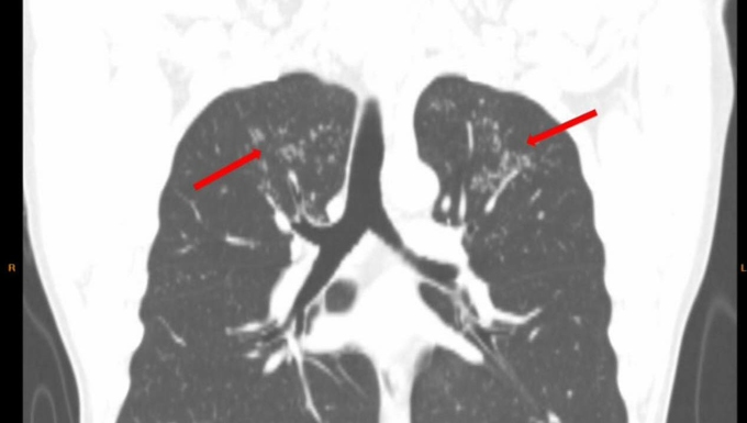 Hình ảnh tổn thương dạng nụ trên cành ở thùy trên hai phổi bệnh nhân. Ảnh: Bệnh viện cung cấp