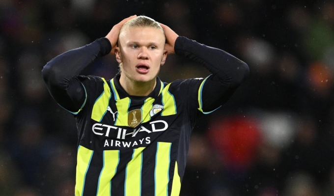 Haaland thất vọng trong trận Man City hòa Crystal Palace 2-2 hôm 7/12. Ảnh: AFP