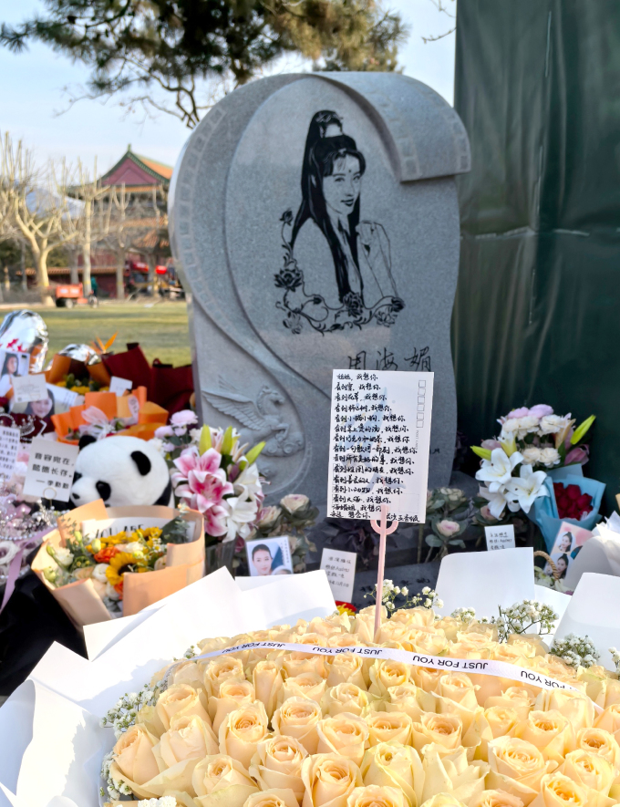 Fan đặt hoa,ghi thiệp thể hiện tình yêu với Châu Hải My tại mộ diễn viên. Gia đình khắc tạo hình Chu Chỉ Nhược của nghệ sĩ trên bia mộ. Ảnh: Sina