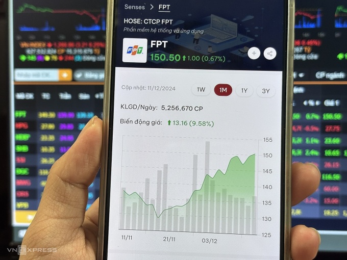 Nhà đầu tư đang theo dõi diễn biến cổ phiếu FPT phiên 11/12. Ảnh: Tất Đạt