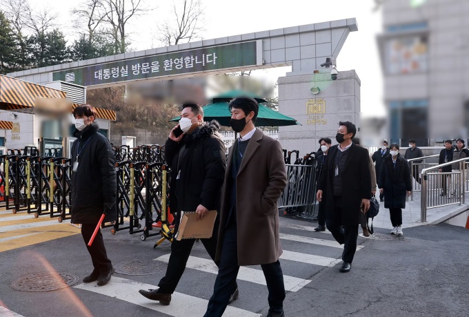 Sau 5 tiếng đối đầu với lực lượng cận vệ và tranh cãi về cách thi hành lệnh khám xét,các điều tra viên đã được vào khuôn viên trụ sở,theo phóng viên tờ Chosun tại hiện trường. Hãng thông tấn Yonhap cho biết có khoảng 18 điều tra viên được vào Văn phòng Tổng thống Hàn Quốc.