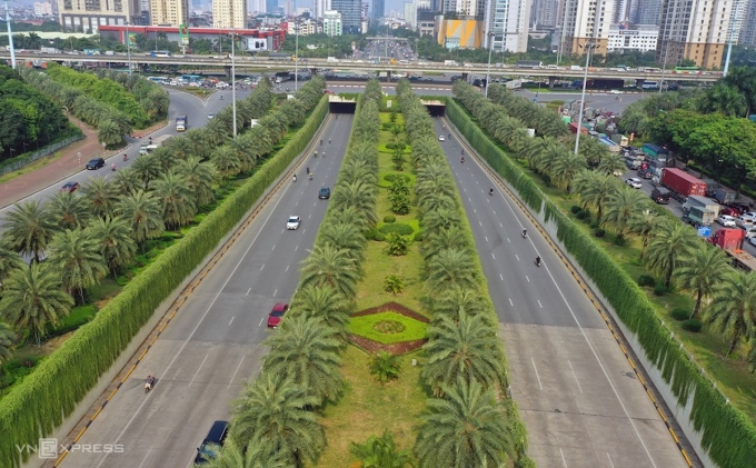 Đại lộ Thăng Long,đoạn qua Trung tâm hội nghị quốc gia,năm 2023. Ảnh: Ngọc Thành