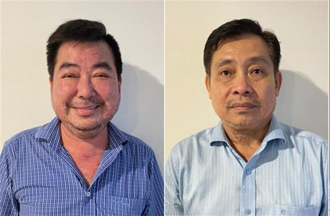 Ông Lê Quang Bình,Chủ tịch Công ty Trung Hậu 68 (trái) và Võ Truyền Thống,Phó tổng giám đốc. Ảnh: Bộ Công an
