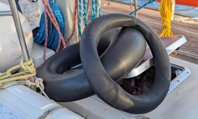 Đôi săm xe mà cô bé bám vào suốt ba ngày lênh đênh trên biển. Ảnh: People