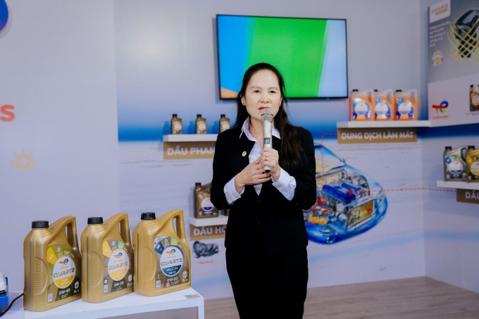 Tại triển lãm,bà Hoàng Tú Anh,TotalEnergies Marketing Việt Nam cho biết,hãng luôn đồng hành cùng các nhà sản xuất ôtô để thiết kế sản phẩm dầu mỡ bôi trơn,mang đến sản phẩm hiệu quả,lợi ích cao nhất cho người sử dụng. Ở khu trưng bày,TotalEnergies cũng giới thiệu các dòng sản phẩm hàng đầu của hãng tại Việt Nam như: Quartz Ineo Xtra HKR C5 0W-20,Quartz 9000 Future FGC 5W-30 và Quartz 9000 Energy 5W40.