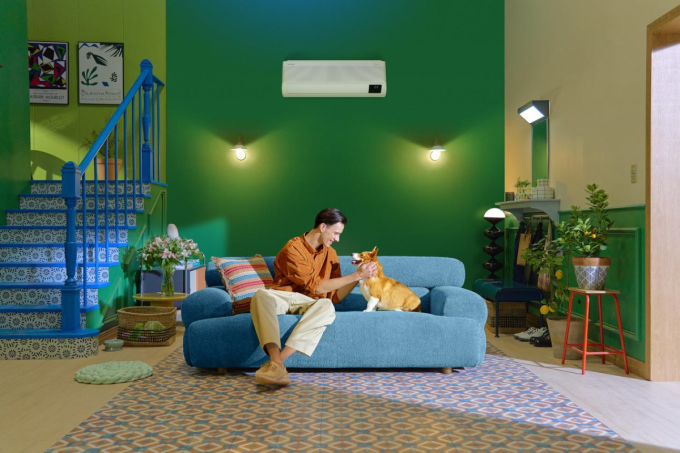 Người dùng thư giãn với làn gió dịu nhẹ từ WindFree. Ảnh: Samsung