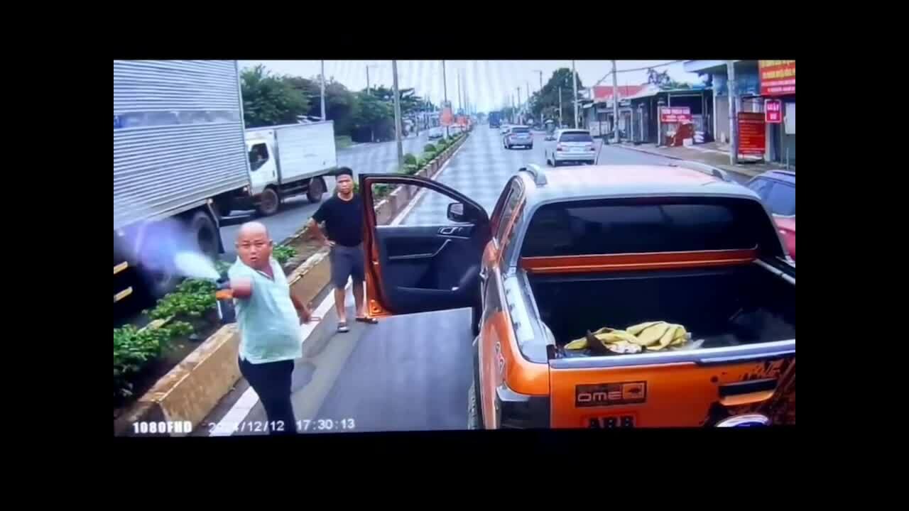 Video Thành chặn xe,cầm gậy và xịt hơi cay vào tài xế xe tải.