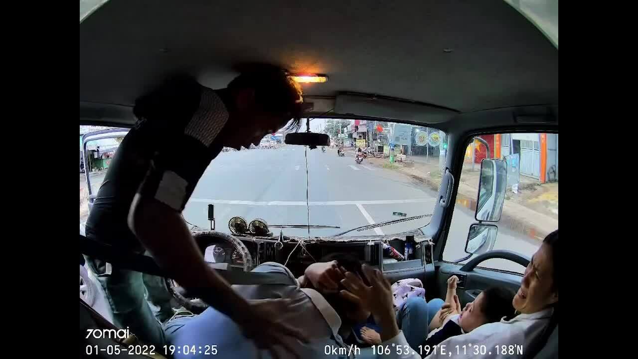 Hình ảnh Hoàng Anh đánh tài xế xe tải.