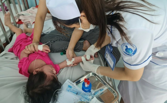Trẻ mắc bệnh sởi điều trị tại Bệnh viện Nhi đồng 1,ngày 12/8. Ảnh: Lê Phương
