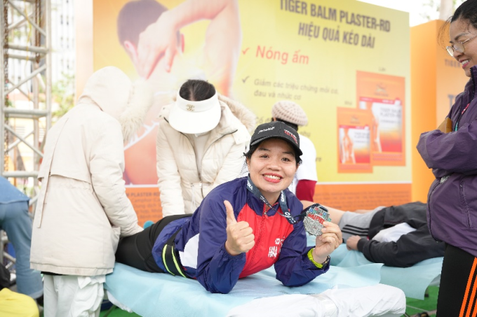 Runner Minh Thu (Hà Nội),thường xuyên luyện tập,thi đấu marathon,đã quen thuộc các sản phẩm của Tiger Balm. Ghé khu vực giãn cơ để kích hoạt trước và phục hồi sau race là thói quen của cô mỗi lần đi giải. Còn anh Hoàng Nam,lần đầu tiên trải nghiệm cùng Tiger Balm cho biết ấn tượng bởi mùi hương và công thức thảo dược độc đáo.