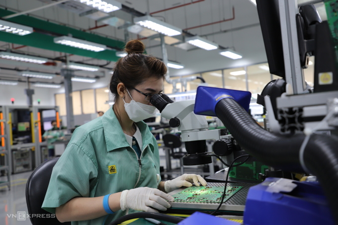 Công nhân Khu chế xuất Tân Thuận,quận 7,TP HCM trong giờ làm việc. Ảnh: Lê Tuyết