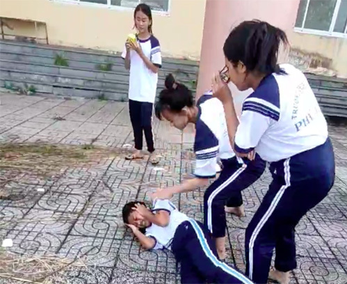 Mấy ngày qua,mạng xã hội lan truyền hai đoạn video dài 1-2 phút,ghi lại cảnh một nhóm học sinh đánh hội đồng hai nữ sinh khác. Nhóm đánh bạn mặc đồng phục thể dục của trường THCS-THPT Phú Quới. Hai em bị đánh mặc đồng phục trường THCS Lộc Hòa,cũng thuộc huyện Long Hồ.
