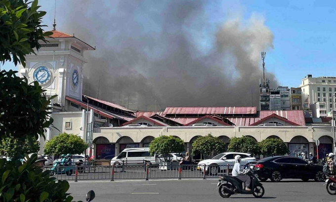 Vị trí cháy nằm phía cửa bắc chợ Bến Thành,gần khu vực đường Lê Thánh Tôn. Ảnh: Người dân cung cấp
