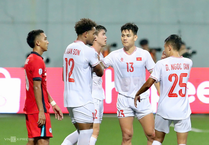 Hồ Tấn Tài (số 13) thi đấu trong trận Việt Nam thắng Singapore 2-0 ở lượt đi bán kết ASEAN Cup 2024. Ảnh: Hiếu Lương