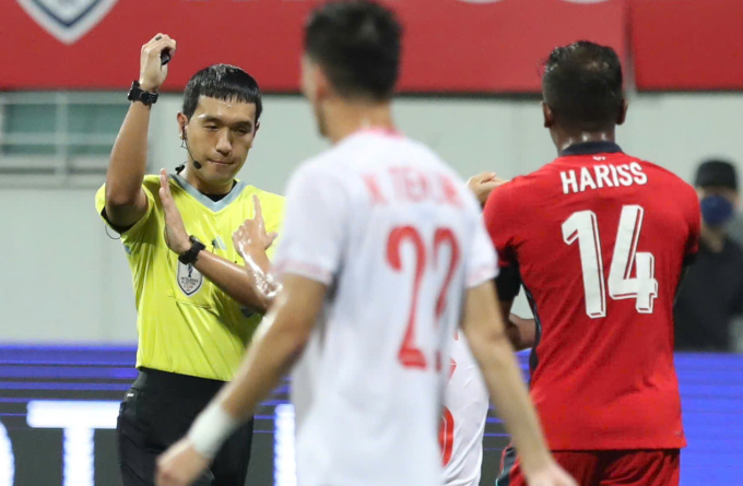 Trọng tài chính Kim Woo-sung xua tay,nhưng VAR vào cuộc vì cho rằng Hồ Tấn Tài có thể đã phạm lỗi. Sau khi mất vài phút trao đổi,ông Kim ra ngoài đường biên xem lại video,trước khi cho trận đấu tiếp tục trong sự bất bình của các cầu thủ Singapore.