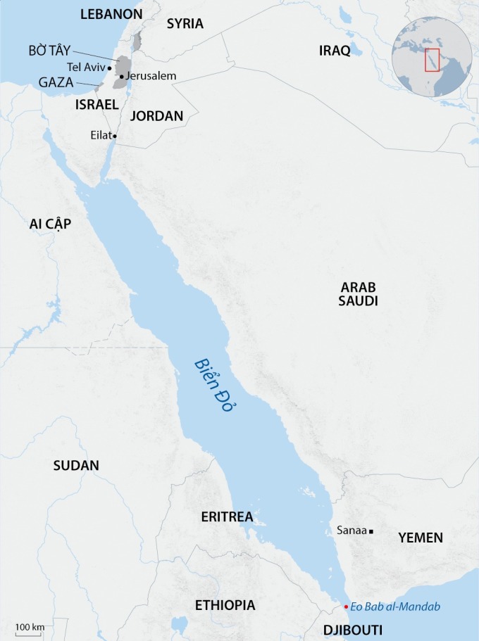 Vị trí Israel và Yemen. Đồ họa: AFP
