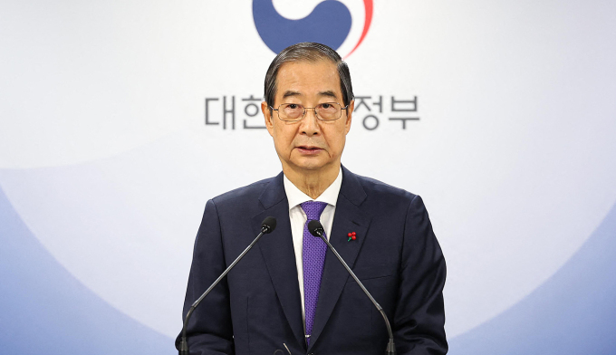 Thủ tướng kiêm quyền Tổng thống Hàn Quốc Han Duck-soo phát biểu tại Seoul ngày 26/12. Ảnh: AFP