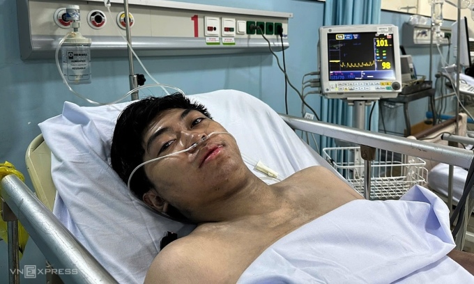 Anh Khang là một trong 7 người bị thương,đang điều trị tại Bệnh viện Quân y 175 (Gò Vấp). Nằm trên giường bệnh với làn da còn ám khói đen,thở máy do ngạt khí độc,nam sinh viên 22 tuổi kể lúc 6h,khi ngủ ở trong phòng trọ ở lầu 4 thì bị đánh thức bởi nhiều tiếng động lớn,trời tối mù do điện tắt bầu còn không khí bên trong nóng dần.