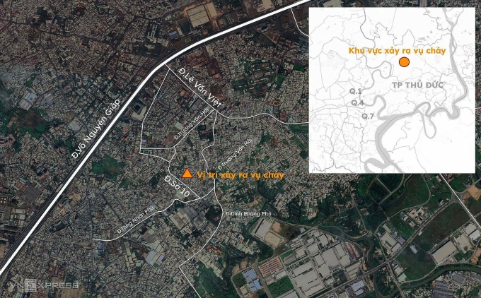 Khu vực xảy ra cháy. Đồ họa: Khánh Hoàng