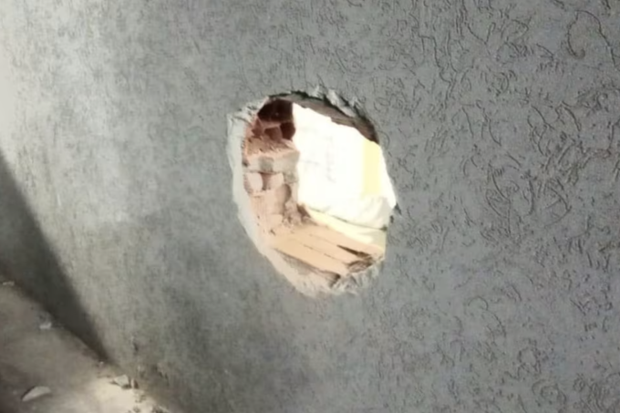 Lỗ trên tường nơi các nghi phạm thoát ra ngoài. Ảnh: La Nación