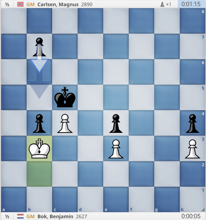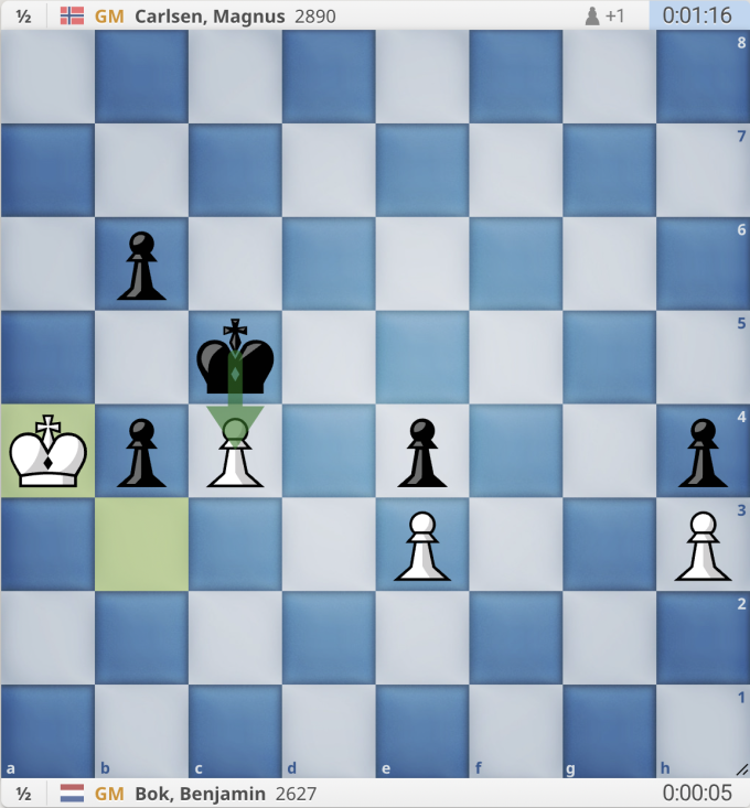 Hòa pat ít xuất hiện trong những ván cờ vua đỉnh cao,vì các kỳ thủ thường cẩn trọng trước những tình huống này. Ở cờ chớp,những sai lầm như của Carlsen có thể diễn ra thường xuyên hơn,vì họ thường chỉ có vài giây suy nghĩ. Nhưng trường hợp này anh có thể tự trách bản thân vì vẫn còn hơn một phút,mà Bok chỉ có vài giây.