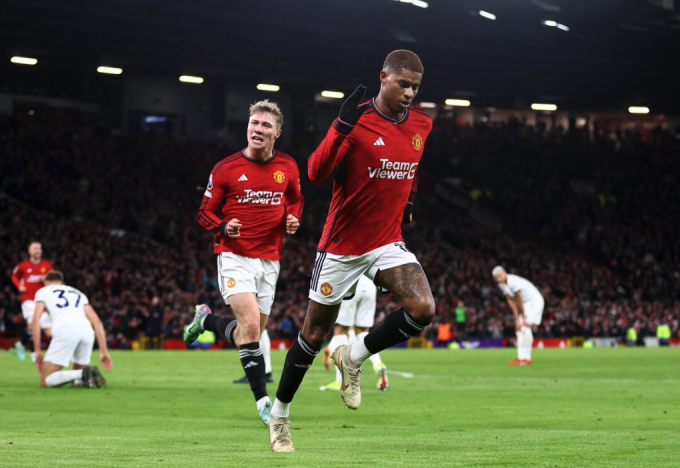 Rashford ghi bàn cho Man Utd trong trận gặp Tottenham ở Ngoại hạng Anh vào ngày 14/1/2024. Ảnh: Reuters