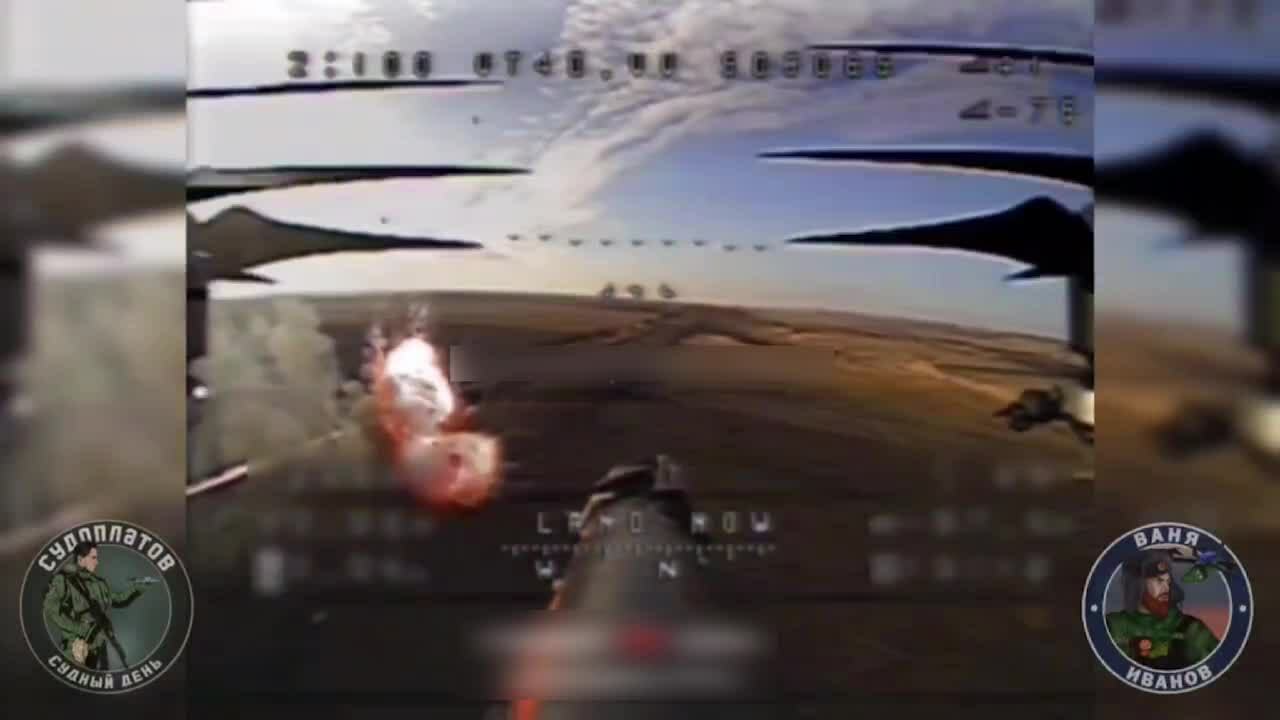 Drone FPV thứ ba tiếp cận để tung đòn đánh bồi,nhưng ghi được cảnh xe tăng bốc cháy và phát nổ dữ dội. Phi cơ quần thảo bên trên,dường như để tìm kiếm mục tiêu mới,trước khi bay qua vị trí xác xe tăng đang bốc cháy.