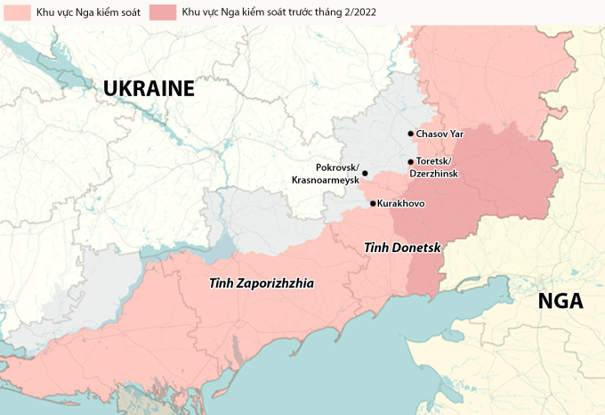 Vị trí một số đô thị tại tỉnh Donetsk. Đồ họa: RYV