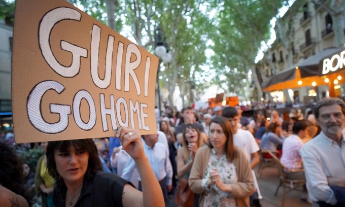 Người dân Tây Ban Nha biểu tình phản đối quá tải du lịch,yêu cầu du khách trở về nhà hồi tháng 5/2024. Ảnh: Solarpix