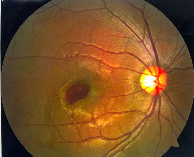 Các bác sĩ chẩn đoán bệnh nhân bị một lỗ thủng tại hoàng điểm kèm theo xuất huyết dưới võng mạc,gây suy giảm thị lực nghiêm trọng. Hoàng điểm là một phần của võng mạc ở phía sau mắt,nơi tập trung rất nhiều tế bào cảm thụ ánh sáng,giữ chức năng làm thị lực trung tâm,giúp nhận biết màu sắc và chi tiết của hình ảnh mà mắt nhìn thấy.