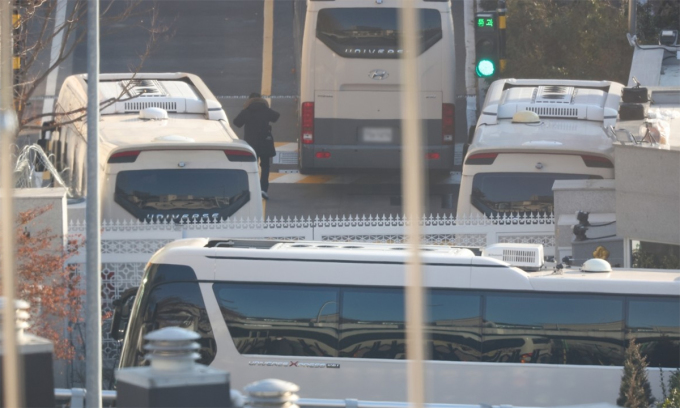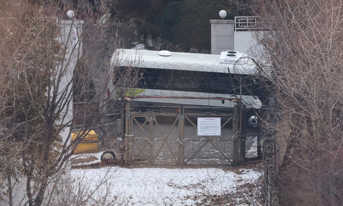 Xe buýt chắn cổng chính dinh thự Tổng thống Hàn Quốc ở thủ đô Seoul ngày 8/1. Ảnh: Yonhap