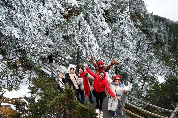 Khách Việt chụp ảnh ở núi tuyết Kiệu Tử,Vân Nam,Trung Quốc tháng 12/2024. Ảnh: Giang Huy