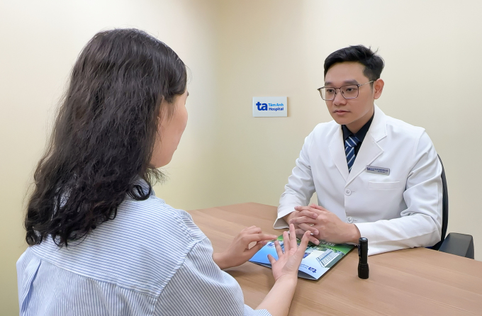 Bác sĩ Long khám cho người bệnh bị mụn trứng cá. Ảnh minh họa: Bệnh viện Đa khoa Tâm Anh