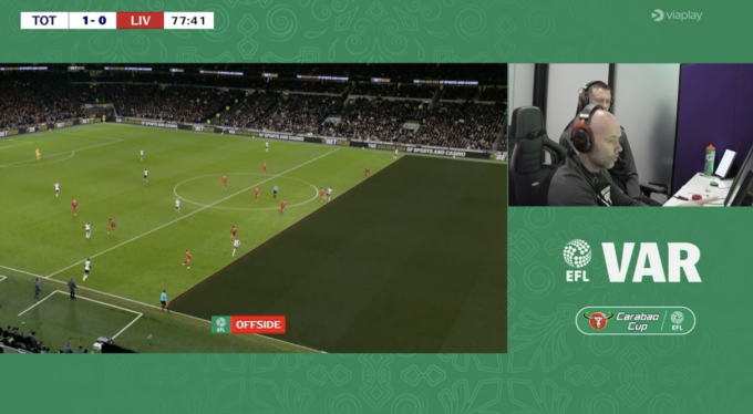 Tình huống Dominic Solanke bị khước từ bàn vì lỗi việt vị. Ảnh chụp màn hình