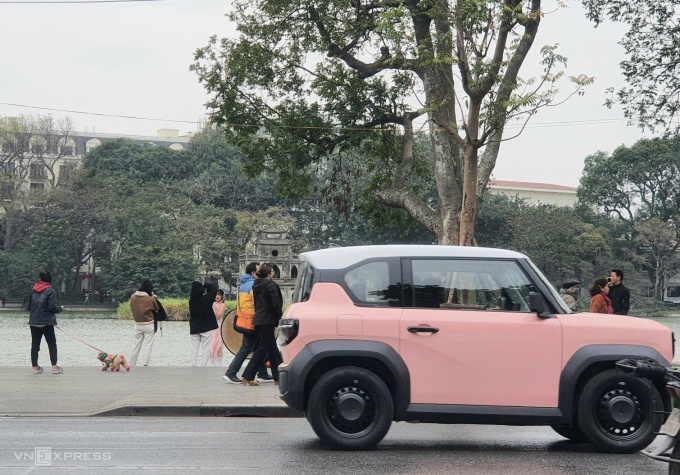 Một chiếc xe điện lưu thông tại khu vực Hồ Gươm sáng 10/1. Ảnh: Võ Hải