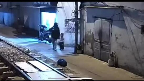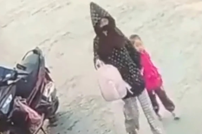 Dữ liệu camera an ninh về hình ảnh cô gái dẫn đứa trẻ.