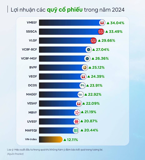 Quỹ mở VMEEF dẫn đầu thị trường trong năm 2024 với hiệu suất 34%. Nguồn: Fmarket