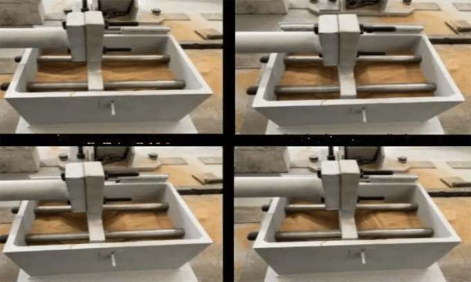 Thiết bị thử nghiệm dùng cát để giảm thiệt hại do động đất. Ảnh: Moussa Leblouba/Mostafa Zahri