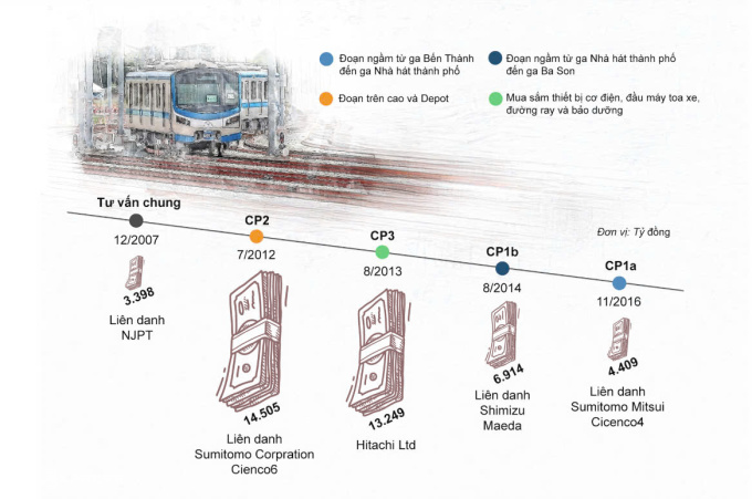 Các gói thầu của tuyến metro Bến Thành - Suối Tiên. Đồ họa: Khánh Hoàng