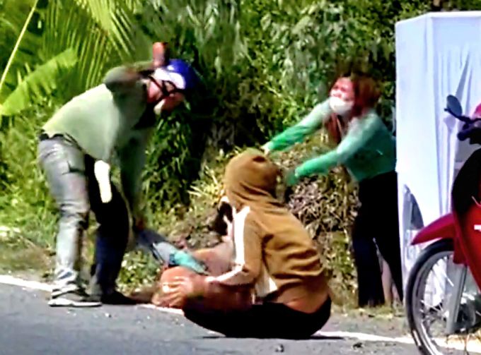 Người đàn ông tấn công vợ ven đường. Ảnh: Người dân cung cấp