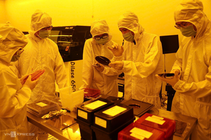 Các kỹ thuật viên tại Phòng thí nghiệm bán dẫn Trung tâm nghiên cứu triển khai,Khu công nghệ cao TP HCM,tháng 12/2024. Ảnh: Trần Quỳnh