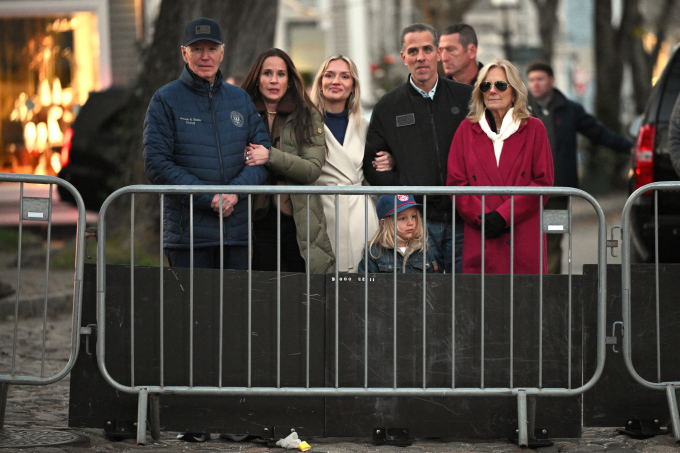 Từ trái sang: Tổng thống Joe Biden,con gái Ashley Biden,con dâu Melissa Cohen Biden,cháu trai Beau,con trai Hunter Biden và Đệ nhất phu nhân Jill Biden tại Nantucket,bang Massachusetts ngày 29/11/2024. Ảnh: AFP
