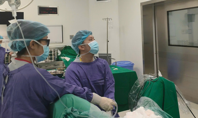 Bác sĩ Khải mổ cho bệnh nhân. Ảnh: Bệnh viện cung cấp