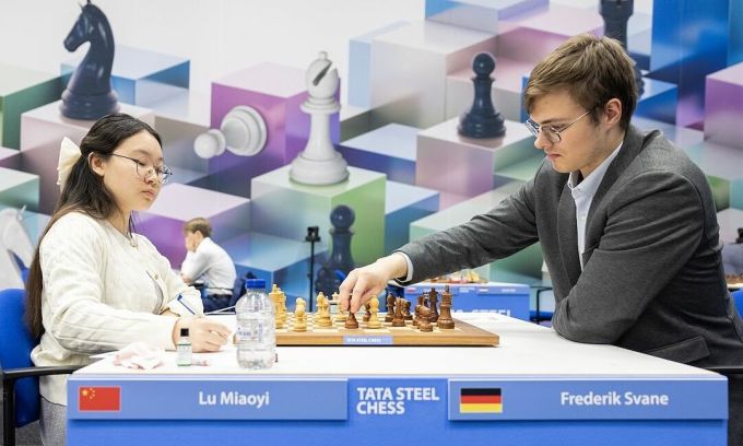 Lu Miaoyi trong ván thắng Frederik Svane tại vòng 3 ngày 20/1/2025 tại Wijk aan Zee,Hà Lan. Ảnh: TSC