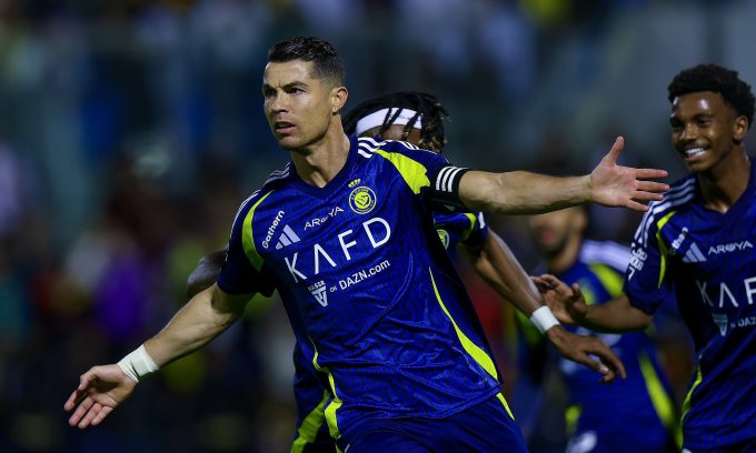 Ronaldo mừng bàn trong trận Al Nassr thắng Al Khaleej 3-1 ở vòng 16 Saudi Pro League tối 12/1/2025. Ảnh: ANFC