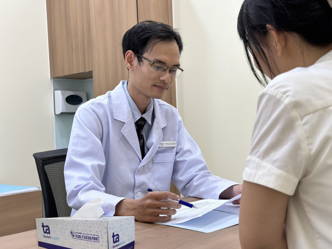 Bác sĩ Khánh giải thích tình trạng sức khỏe cột sống cho người bệnh. Ảnh minh họa: Phòng khám Đa khoa Tâm Anh Quận 7