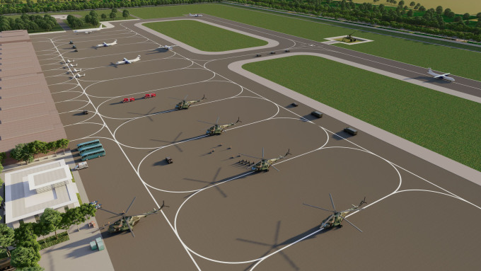 Minh họa phối cảnh bãi đỗ và đường băng sân bay Gia Bình. Ảnh: Sun Group